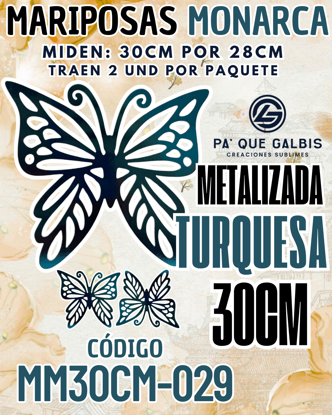 Sé el primero en valorar “Mariposas 30 Cm Monarca Turquesa metalizadas 1 paquete contiene 2 und. código MM30CM-029”