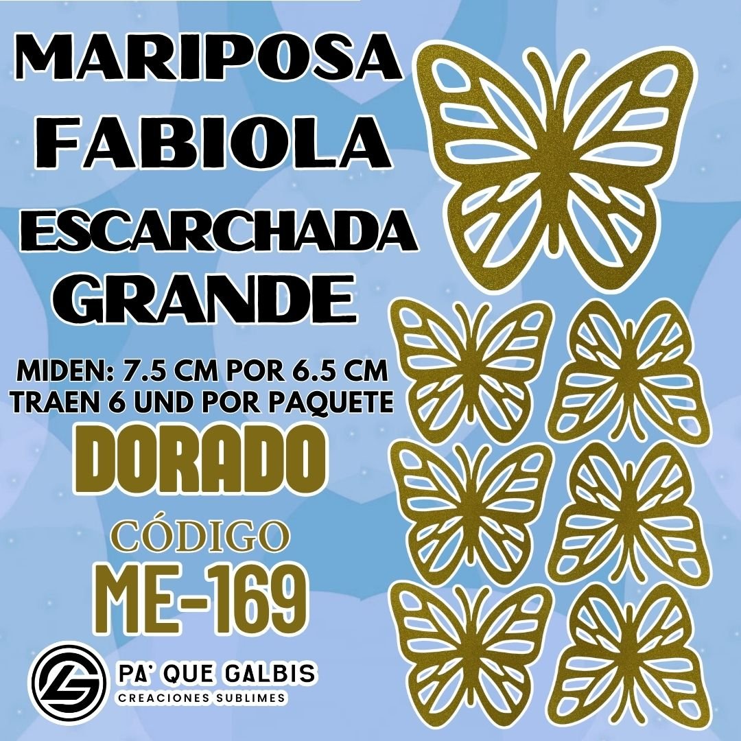 Sé el primero en valorar “Mariposas Grandes Fabiola Dorado Escarchada 1 paquete contiene 6 und. código ME-169”