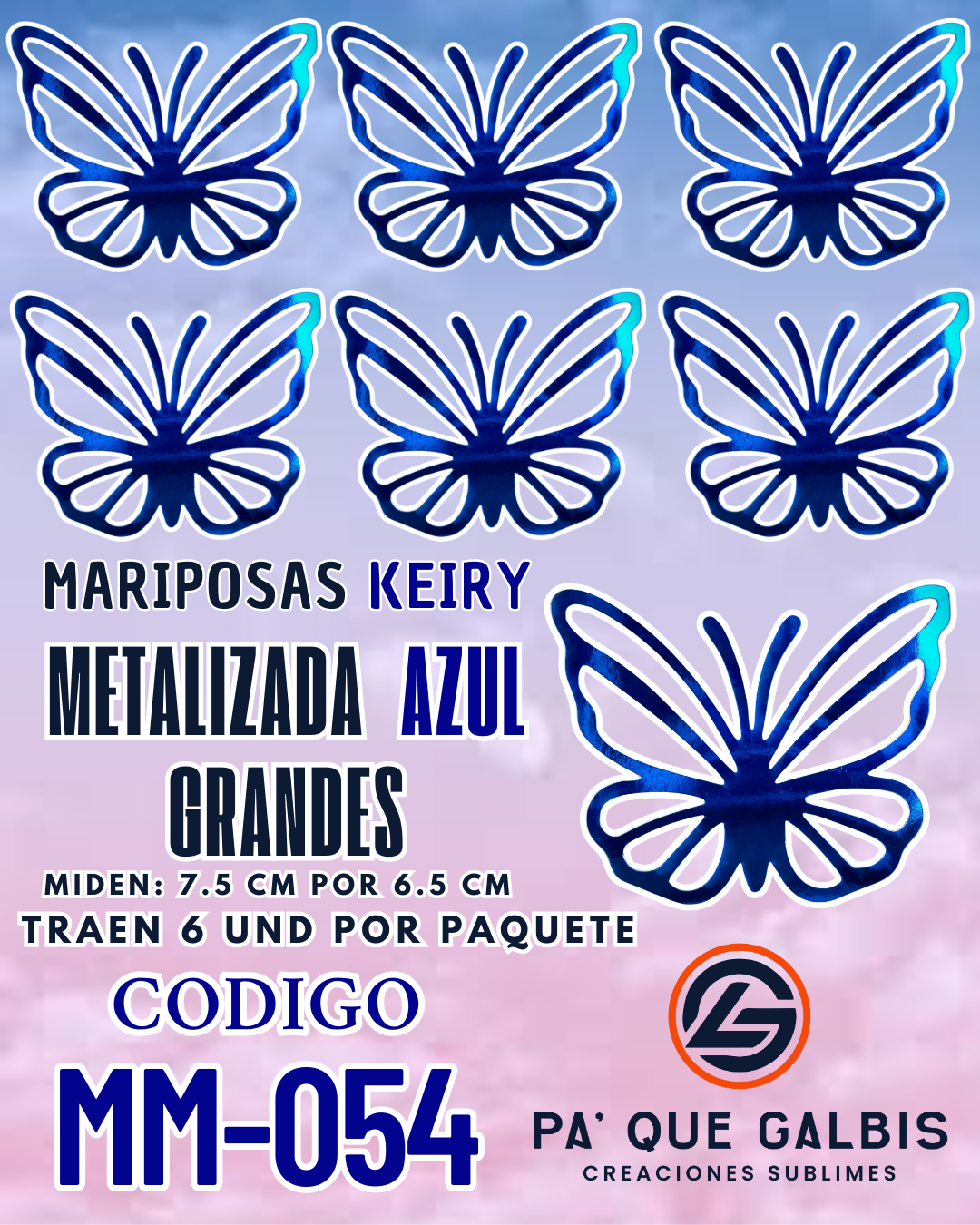 Mariposas Grandes Keiry Azul metalizadas 1 paquete contiene 6 und. código MM-054