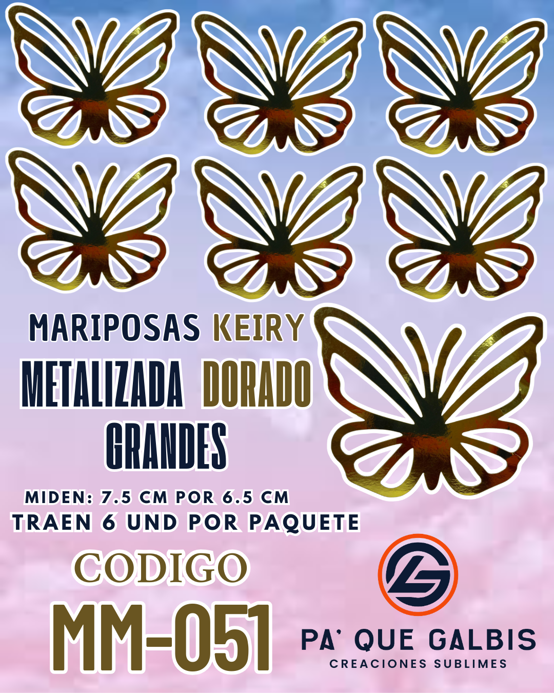 Mariposas Grandes Keiry Dorado metalizadas 1 paquete contiene 6 und. código MM-051