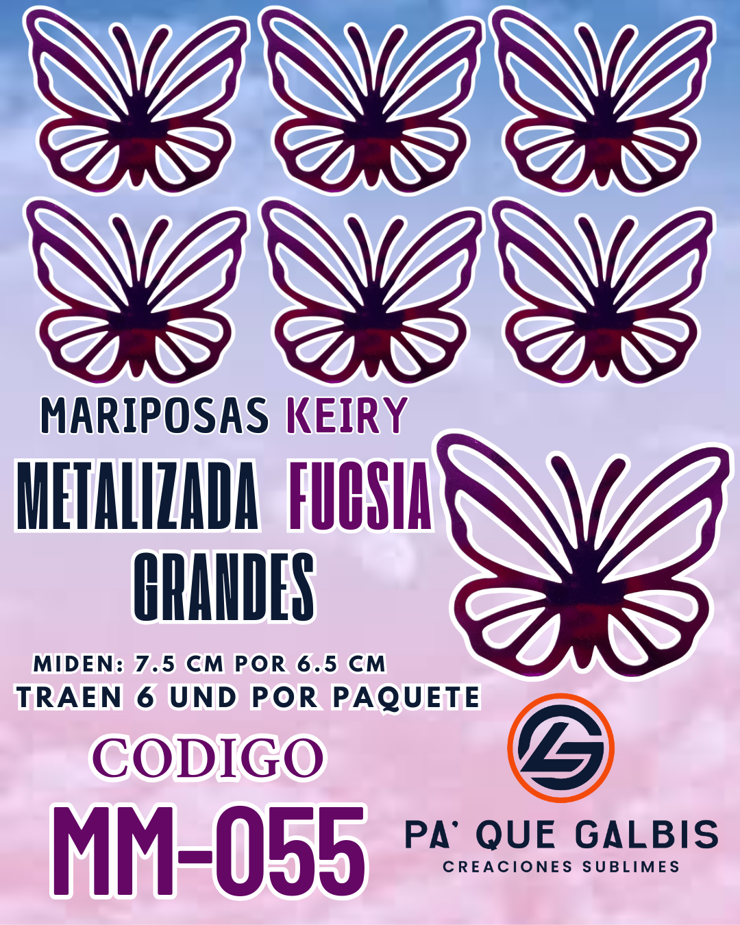 Mariposas Grandes Keiry Fuscia metalizadas 1 paquete contiene 6 und. código MM-055