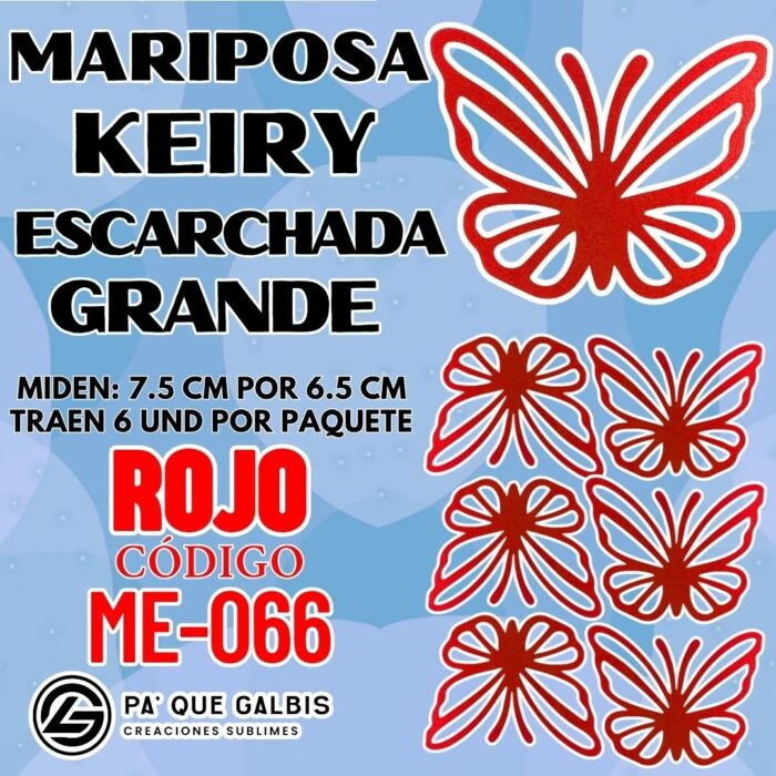 Mariposas Grandes Keiry rojo Escarchada 1 paquete contiene 6 und. código ME-066