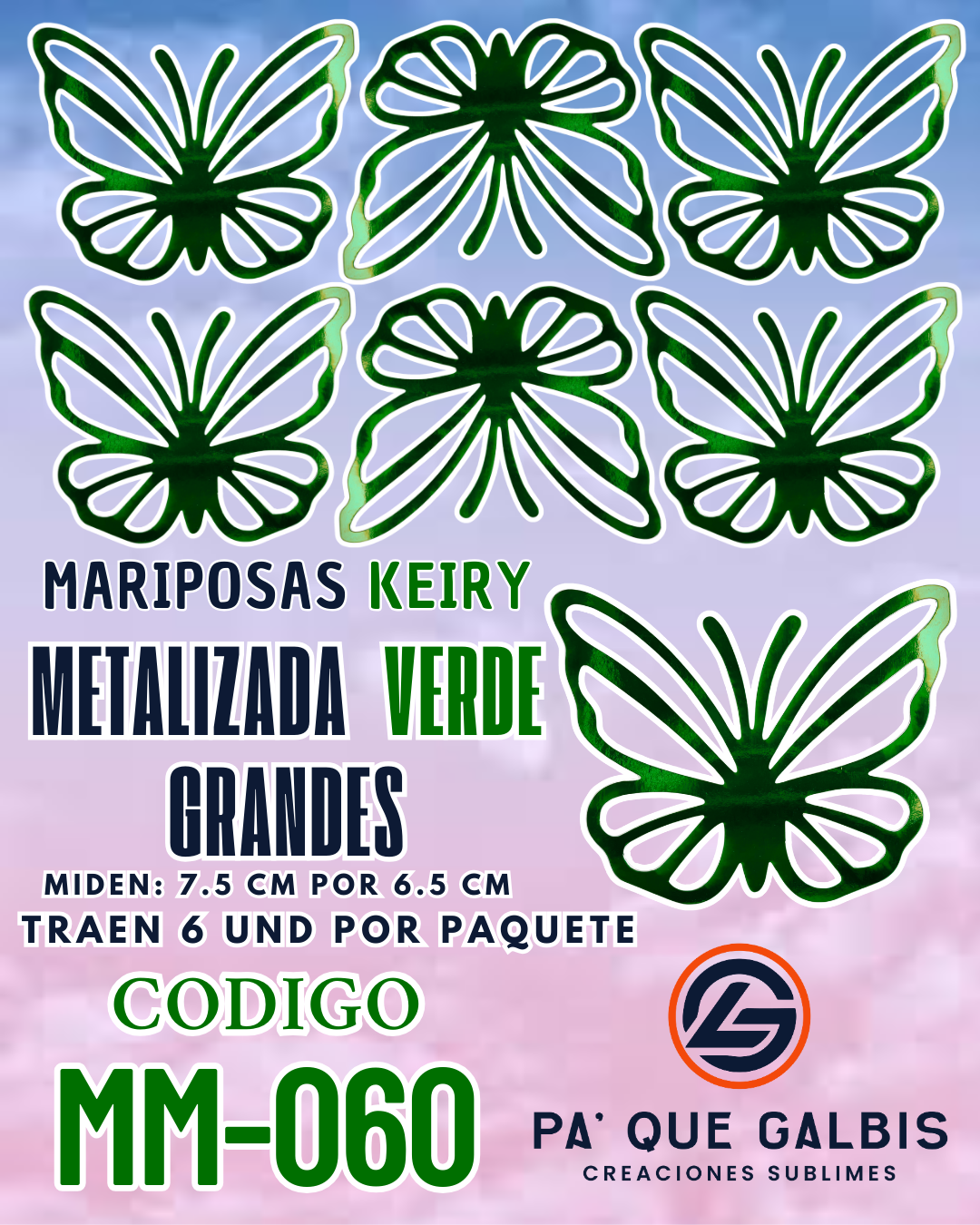 Mariposas Grandes Keiry Verde metalizadas 1 paquete contiene 6 und. código MM-060