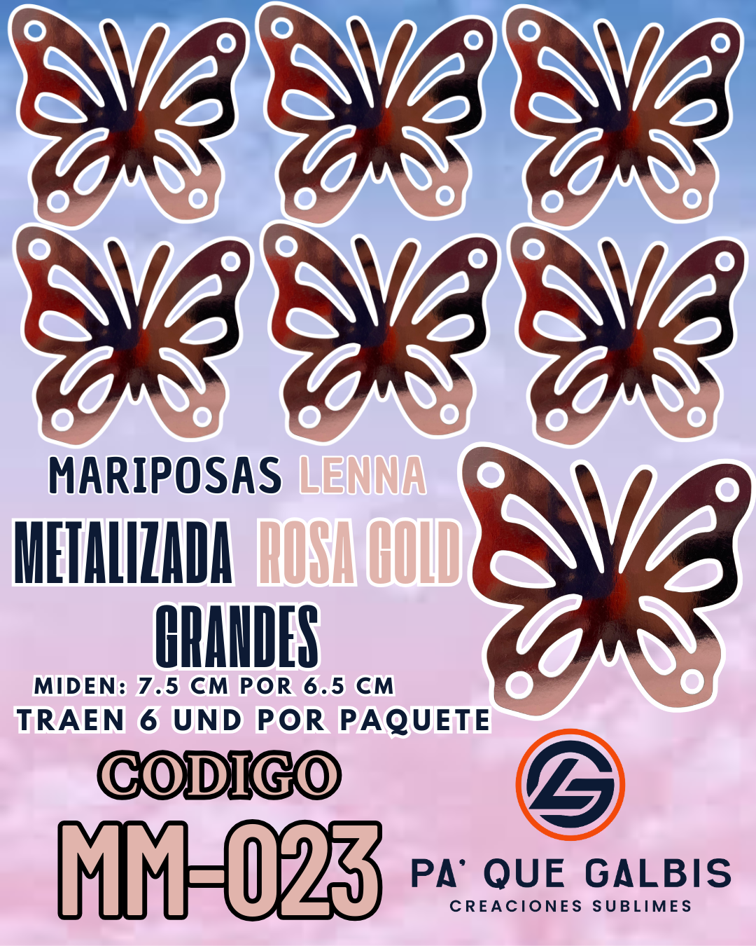 Mariposas Grandes Lenna Rosa Gold metalizadas 1 paquete contiene 6 und. código MM-023