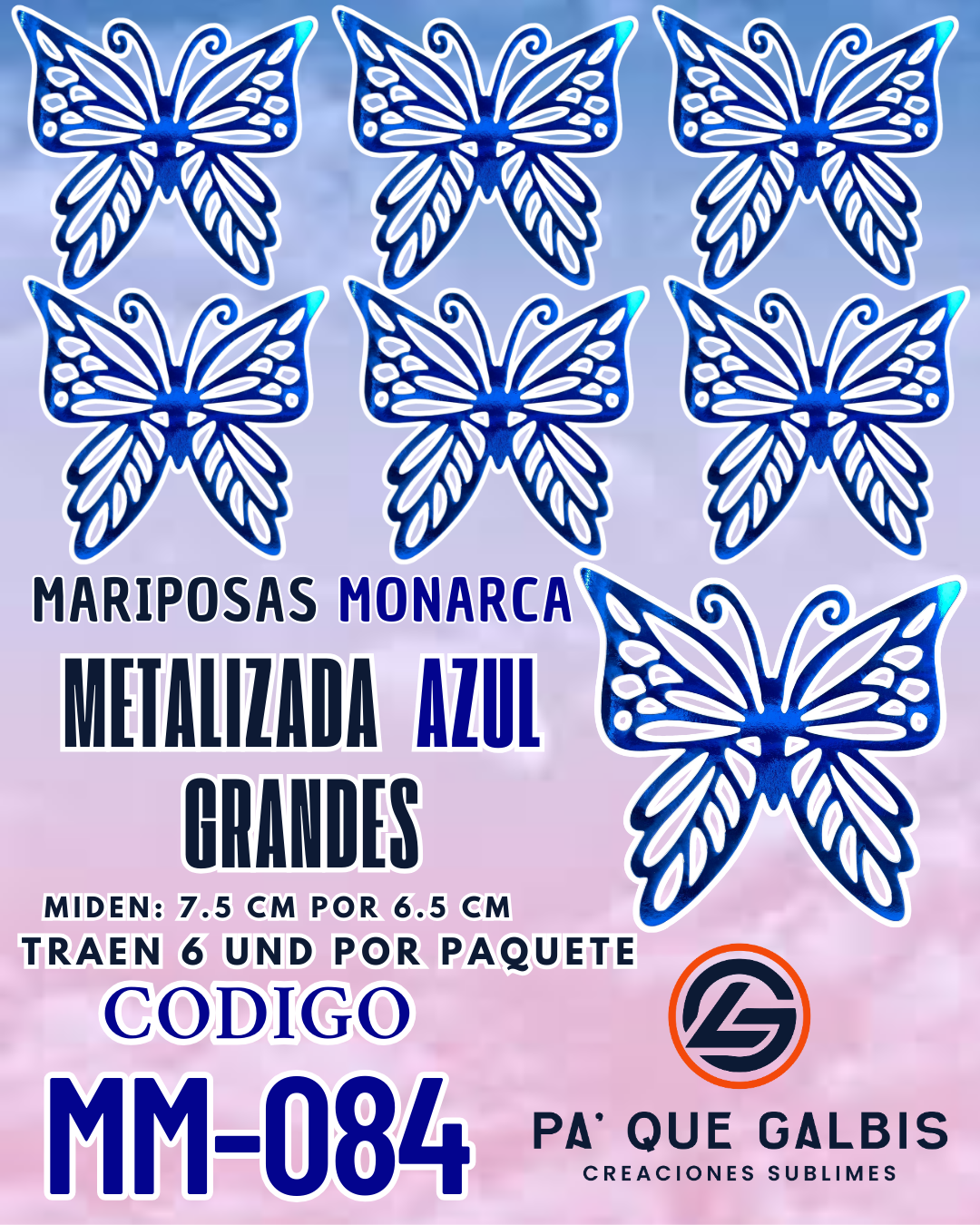Mariposas Grandes Monarca Azul metalizadas 1 paquete contiene 6 und. código MM-084