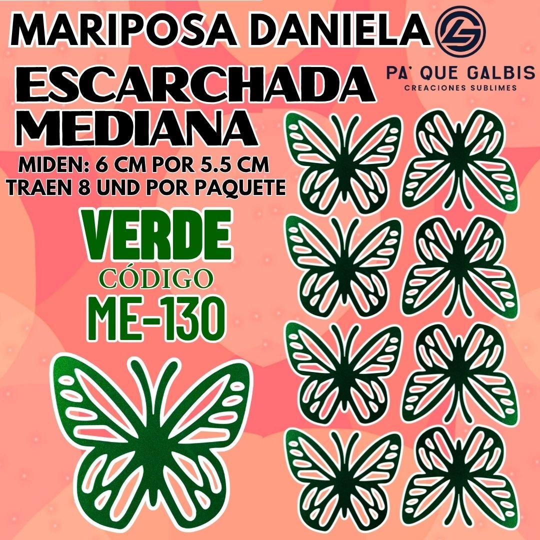 Mariposas Medianas Daniela Verde Escarchada 1 paquete contiene 8 und. código ME-130