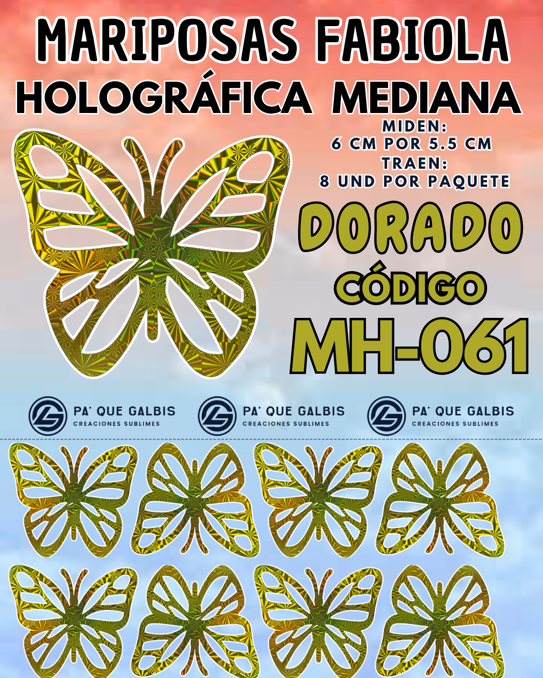 Mariposas Medianas Fabiola Dorado Holográfica 1 paquete contiene 8und. código MH-061