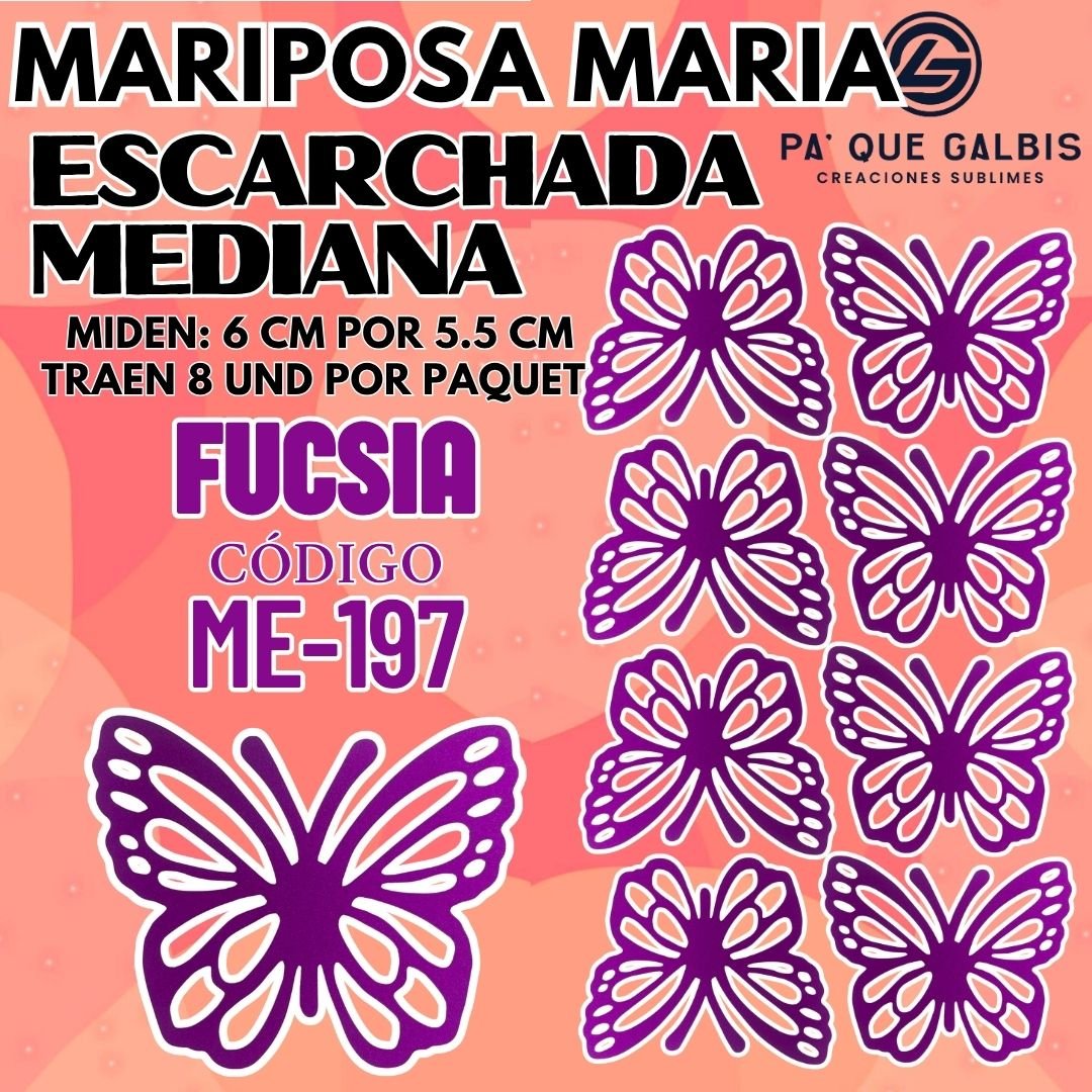 Mariposas Medianas Maria Fucsia Escarchada 1 paquete contiene 8 und. código ME-197