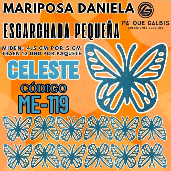 Sé el primero en valorar “Mariposas Pequeñas Daniela Celeste Escarchada 1 paquete contiene 12 und. código ME-119” Cancelar la respuesta