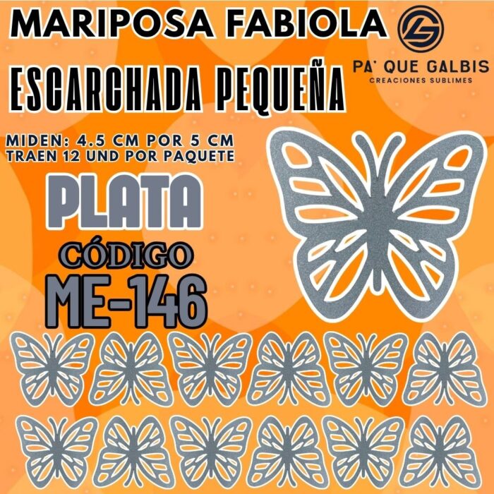 Sé el primero en valorar “Mariposas Pequeñas Fabiola Plateada Escarchada 1 paquete contiene 12 und. código ME-146” Cancelar la respuesta