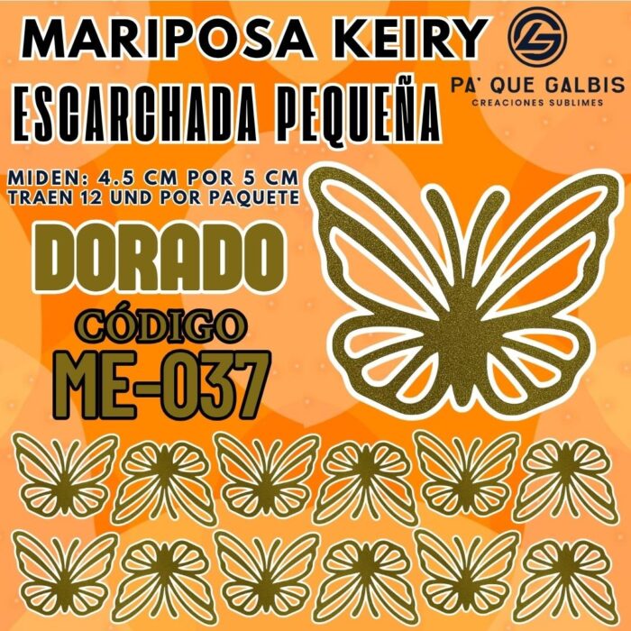 Mariposas Pequeñas Keiry Dorado Escarchada 1 paquete contiene 12 und. código ME-037
