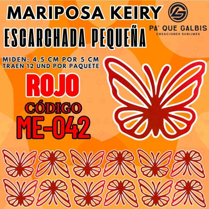 Mariposas Pequeñas Keiry Rojo Escarchada 1 paquete contiene 12 und. código ME-042
