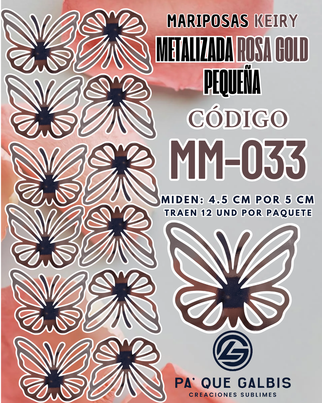 Mariposas pequeñas Keiry Rosa Gold metalizadas 1 paquete contiene 12 und. código MM-033
