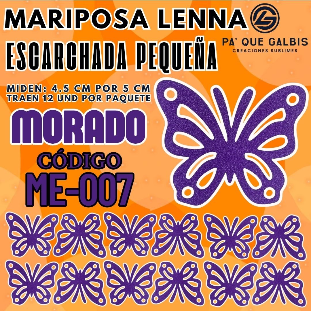 Mariposas Pequeñas Lenna Morado Escarchada 1 paquete contiene 12 und. código ME-007