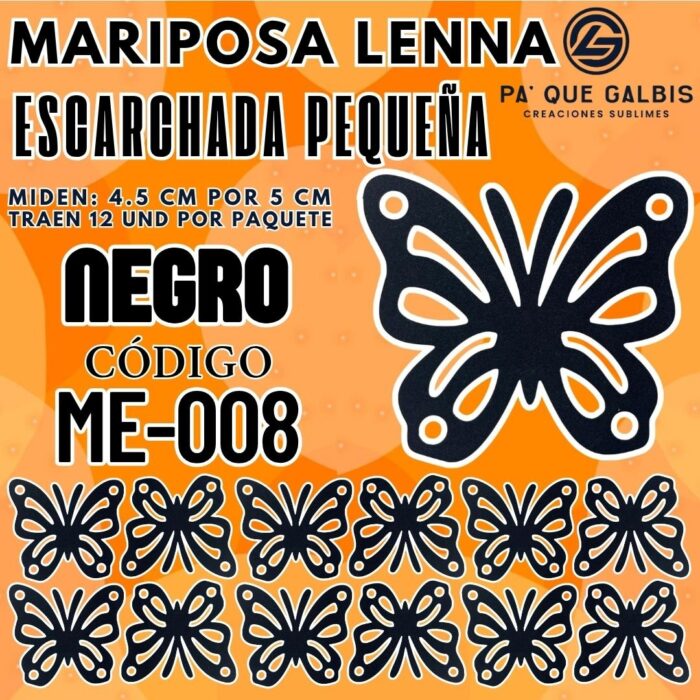 Mariposas Pequeñas Lenna Negro Escarchada 1 paquete contiene 12 und. código ME-008