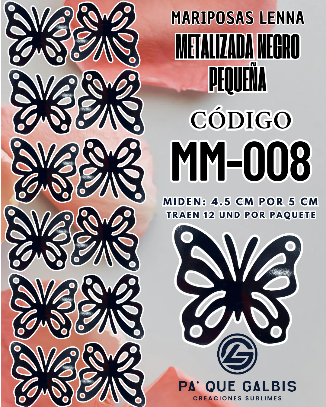Mariposas pequeñas Lenna Negro metalizadas 1 paquete contiene 12 und. código MM-008