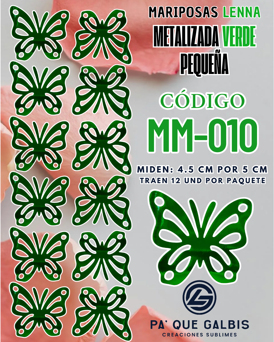 Mariposas pequeñas Lenna verde metalizadas 1 paquete contiene 12 und. código MM-010