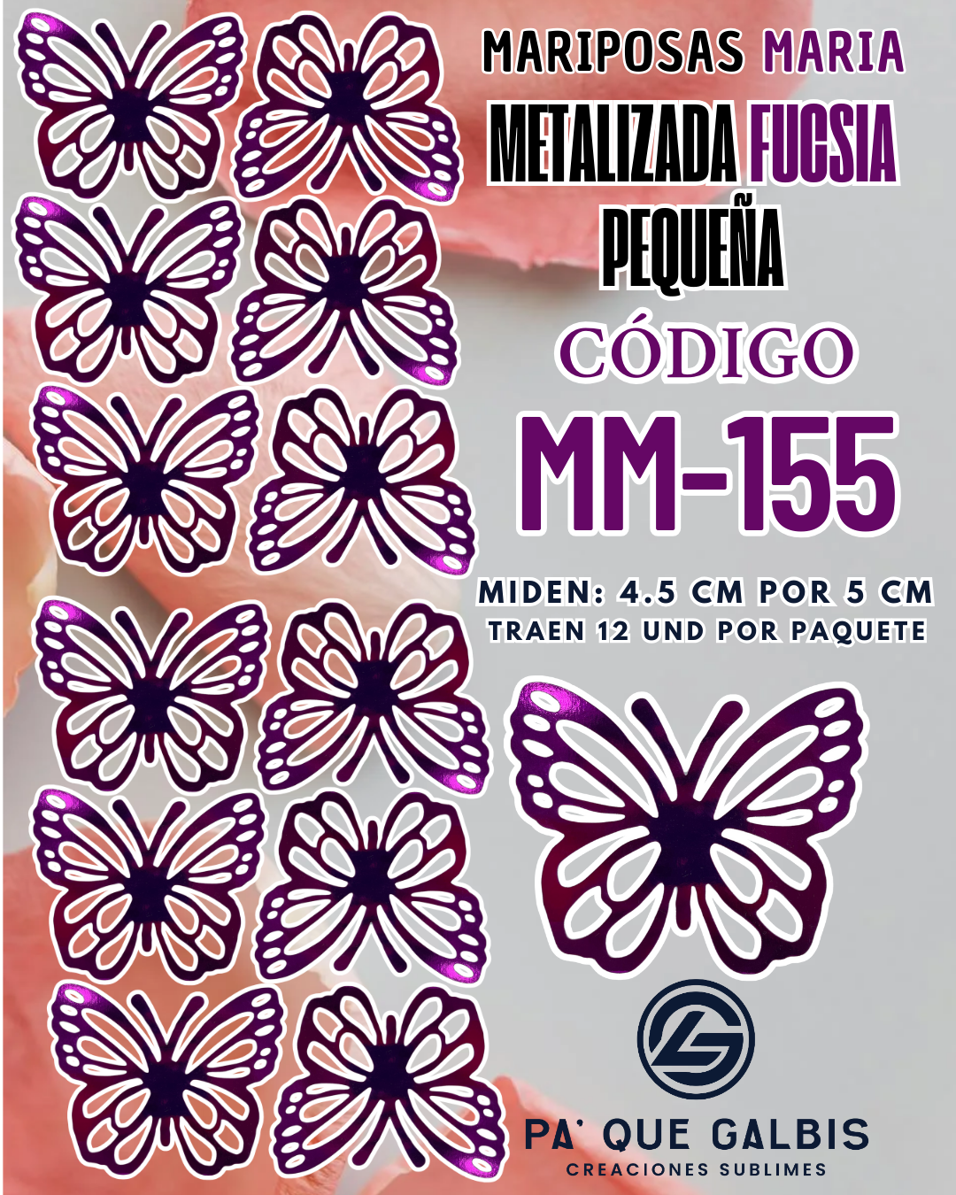 Mariposas pequeñas Maria Fuscia metalizadas 1 paquete contiene 12 und. código MM-155