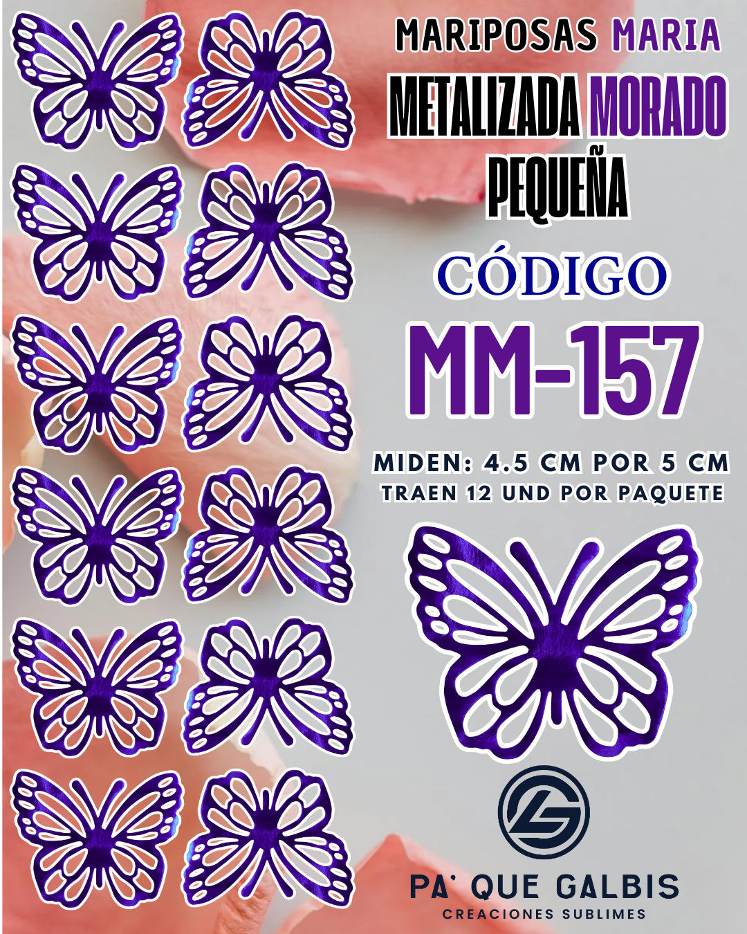Mariposas pequeñas Maria Morado metalizadas 1 paquete contiene 12 und. código MM-157