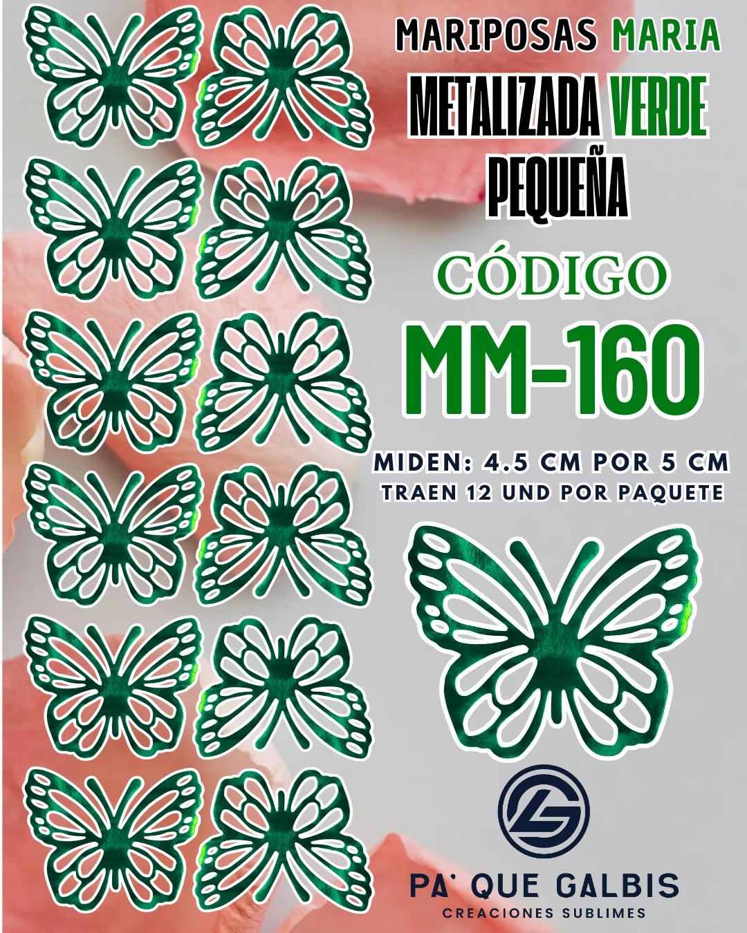 Mariposas pequeñas Maria Verde metalizadas 1 paquete contiene 12 und. código MM-160