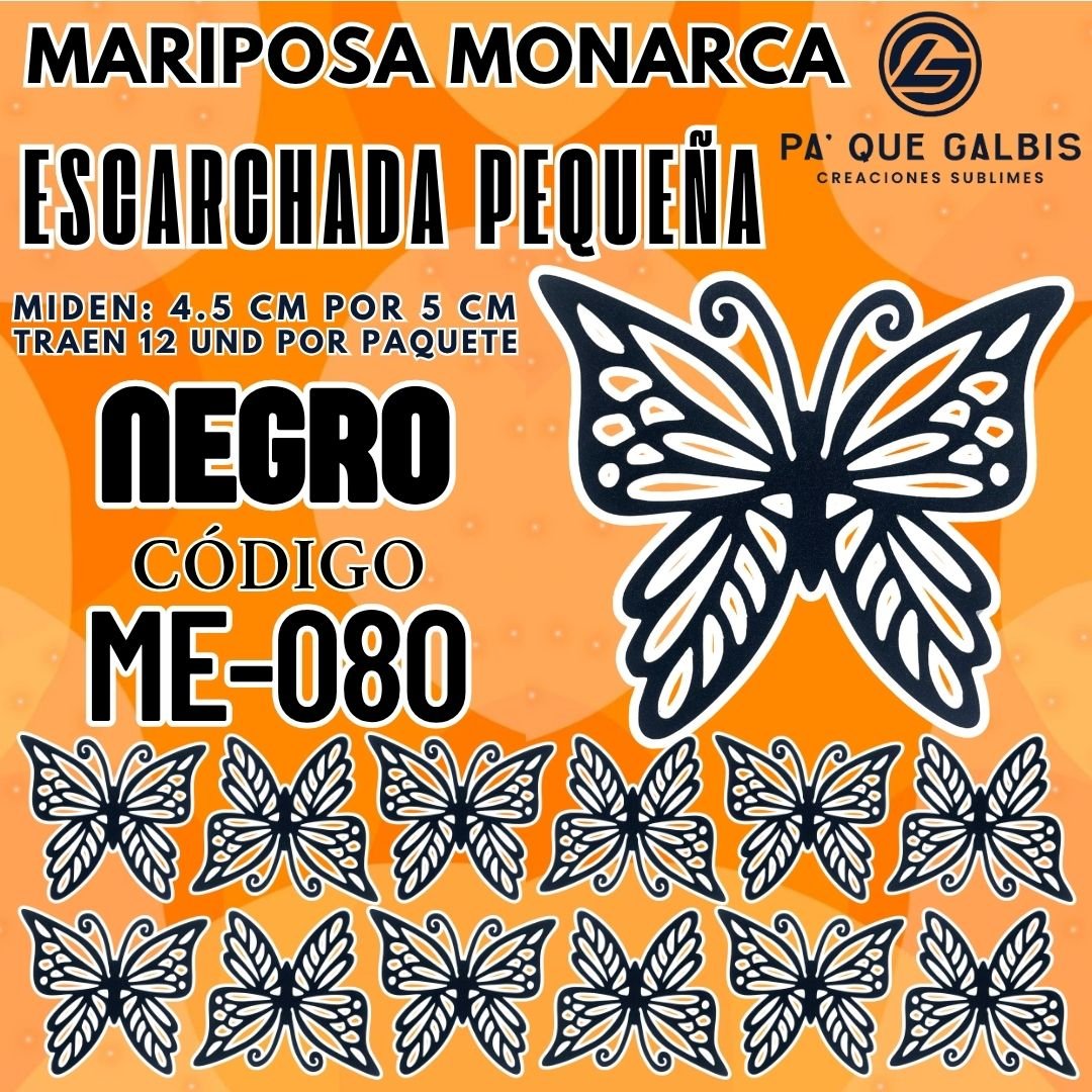 Mariposas Pequeñas Monarca Negro Escarchada 1 paquete contiene 12 und. código ME-080