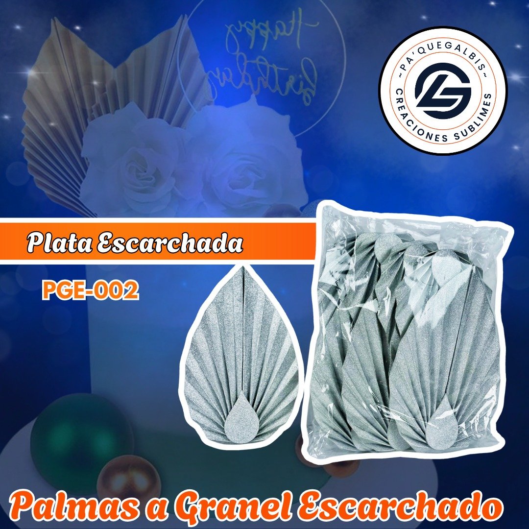 PALMA A GRANEL PLATEADO ESCARCHADA 1 PAQUETE CONTIENE 10 UND CÓDIGO PGE-002