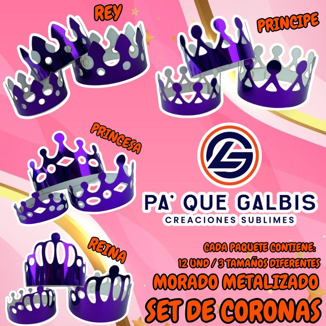 SET DE CORONAS MORADO METALIZADA 1 PAQUETE CONTIENE 12 UND CON 3 TAMAÑOS DIFERENTES