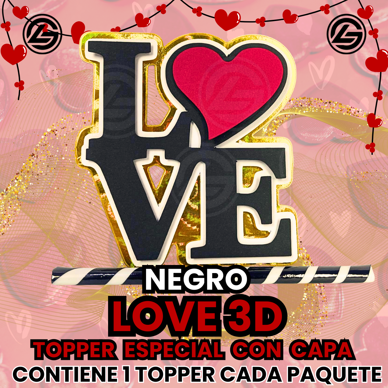Topper Especial Love 3D Negro