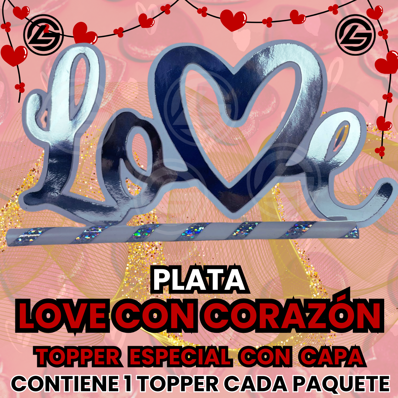 Topper Especial Love Con Corazón Plateado